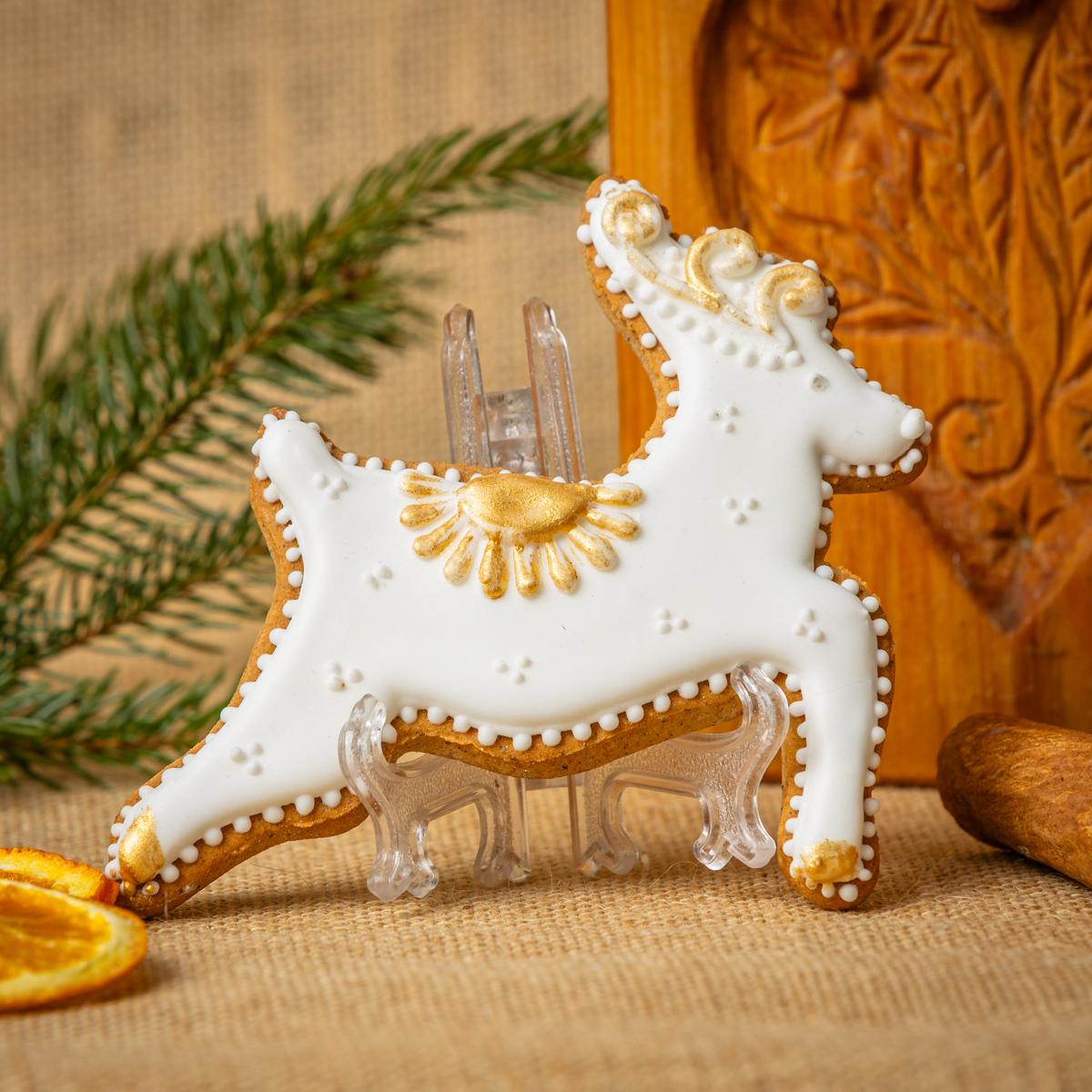 Pierniczek jest pakowany w celofanową torebeczkę, którą przewiązujemy wstążeczką ze świątecznymi wzorami.